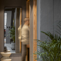 El proyecto más distintivo del estudio fue diseñado como un concesionario boutique para autos de alta gama. Es un juego de contrastes entre materiales de aspecto industrial y crudo con mobiliario y acabados suaves y acogedores. La luz, tanto natural como artificial, se convierte en un elemento esencial, dinamizando la percepción del espacio. El suelo en microcemento es la base de la exhibición de los vehículos que se resalta a través de plataformas ligeramente elevadas para enmarcarlos, mientras que muros en tramas de ladrillo y vegetación natural aportan carácter y vida. El techo oscuro genera profundidad y se equilibra con estructuras flotantes metálicas en tonos bronce.