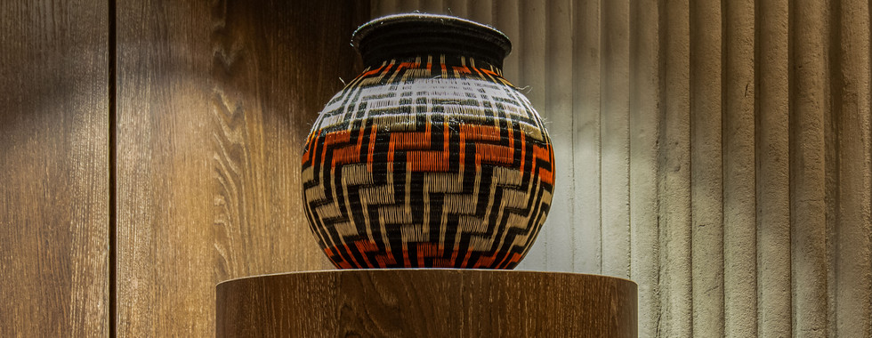 Creado por artesanos Wounaan del Chocó, este jarrón tejido en werregue rinde homenaje al oficio colombiano. Su geometría alude a los ríos y bosques del Pacífico, representando equilibrio, sofisticación y un vínculo profundo con el territorio.